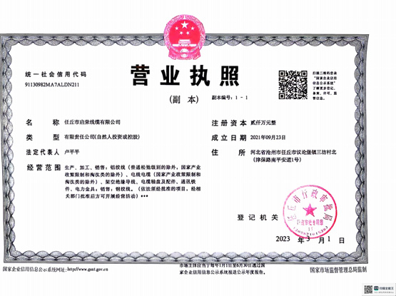任丘市启荣线缆有限公司是一家集生产、销售于一体的线缆生产企业。位于中国百强县市—任丘市。